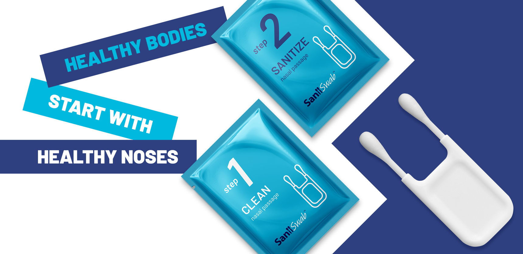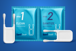 SaniiSwab is for daily use and follows a strict 2-step, surgical protocol to clean and sanitize the nasal cavity, reducing viruses and bacteria for nasal decolonization. SaniISwab's pre-saturated swabs quickly clean only the nasal skin surface, never the mucosa—making it safe and easy to use by patients, health-care workers, staff and visitors alike.